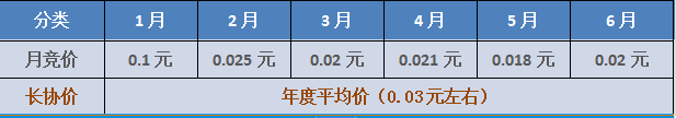 答:如圖所示,以上為江蘇省2019年上半年各月的月度價,長協(xié)價為12個月月度價的平均值。月度價為浮動的價格,每個月末會統(tǒng)計公示;長協(xié)價為固定的價格,每年末會統(tǒng)計公示。