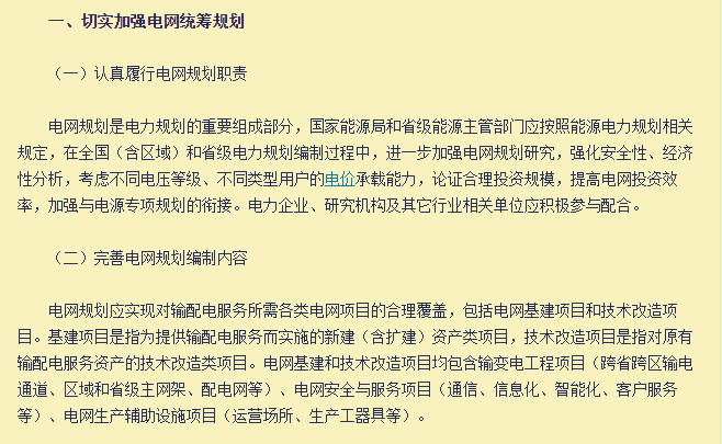 為了深入推進(jìn)電力體制改革,強(qiáng)化國家對(duì)電力統(tǒng)籌規(guī)劃,有效加強(qiáng)對(duì)電網(wǎng)投資的監(jiān)管力度,近日,國家發(fā)改委、能源局研究制定了《關(guān)于加強(qiáng)和規(guī)范電網(wǎng)規(guī)劃投資管理工作的通知(征求意見稿)》。