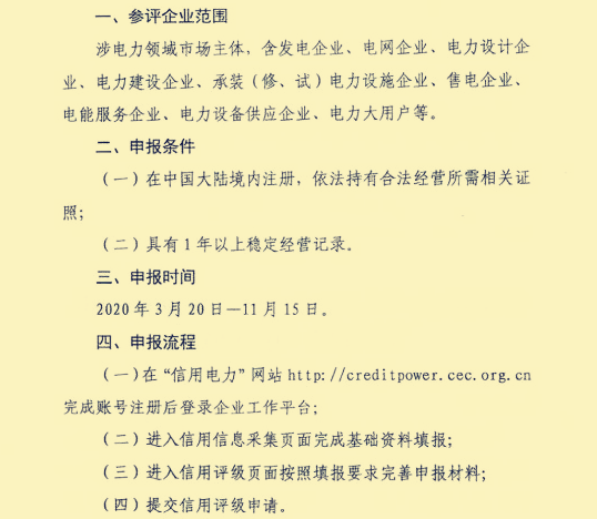 那么有哪些單位可以進(jìn)行信用評價工作呢?根據(jù)《通知》內(nèi)容來看,參評的企業(yè)范圍很廣,包括售電公司、發(fā)電企業(yè)、電力用戶、電力建設(shè)企業(yè)、電能服務(wù)公司等等。