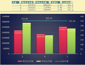 從上面陜西省電力交易中心給出的數(shù)據(jù)分析得出,5月份輸電車(chē)申報(bào)電量比售電側(cè)申報(bào)哦的電量多了不少,供求和需求的比為1.32,因此對(duì)買(mǎi)方市場(chǎng)比較有利,只要電價(jià)和預(yù)期相差不大,那么成交的幾率是很大的。